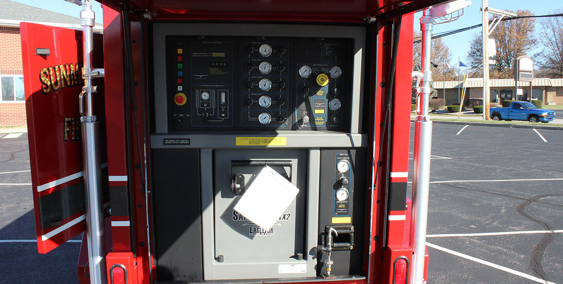 This trailer is deployed in scenes that require air-tanks to be filled often such as very large structure fires. It is also available as mutual aid for other departments to use if they require it.